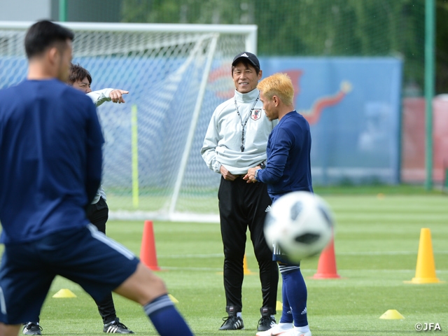 「良い形でこちらに入れたので選手も雰囲気が良い」という西野朗監督は、当初の予定を変更しての非公開練習の実施について、「メンバーを組みながら戦術的なことをした」と説明。「集中して、良い形でトレーニングができた。さらに良い準備をしたい」と語りました。