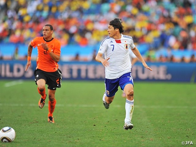 一方、ワールドカップで『プレーする』楽しさを知ったのは2010年の南アフリカ大会だ。ドイツ大会ではピッチに立つことなく大会を終えたこともあるが、普段から「サッカーはプレーしなきゃ楽しくない」と繰り返してきた遠藤選手だからだろう。グループステージの3試合と、ノックアウトステージの1試合をフル出場で戦い切った充実感は大きかった。