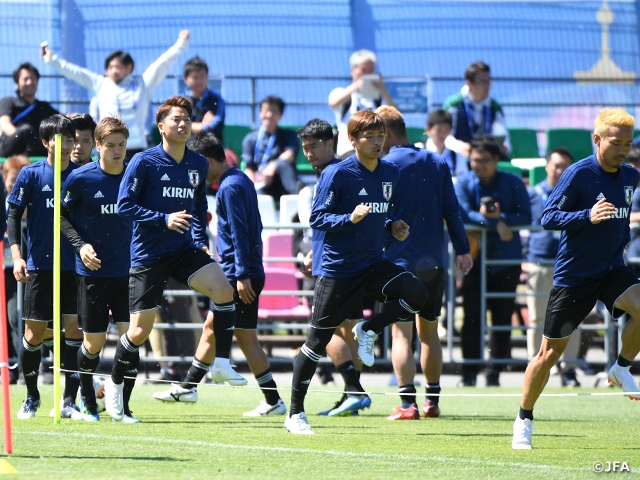 ロシアで開催中の2018 FIFAワールドカップ初戦のコロンビア戦を2日後に控えて、SAMURAI BLUE(日本代表)は6月17日(日)、午前中にカザンのベースキャンプで非公開練習を行い、午後、試合開催地のサランスクへ向けて移動しました。