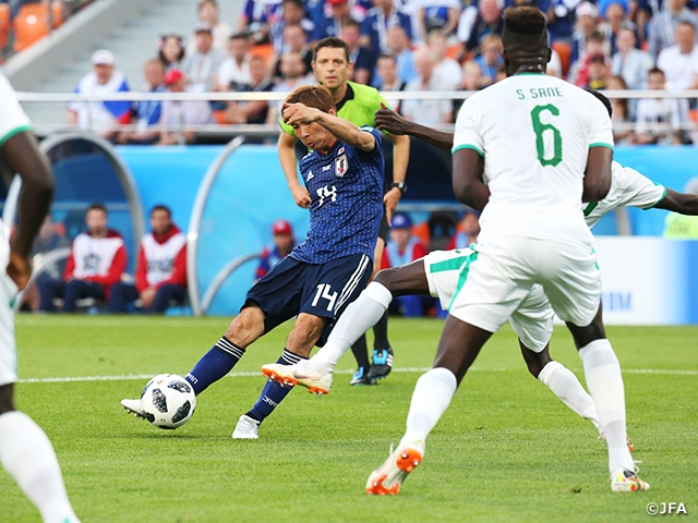 SAMURAI BLUE(日本代表)は6月24日(日)、2018 FIFAワールドカップロシアのグループステージ第2戦でセネガル代表とエカテリンブルク・アリーナで対戦し、2度のリードを許しながらも乾貴士選手(レアル・ベティス)と交代出場した本田圭佑選手(CFパチューカ)のゴールで2度追いつき、2-2で引き分けました。