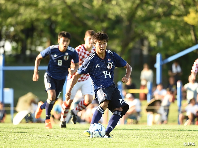 初招集選手が半分以上いるなかで、慣れるまでに課題もありましたが、トレーニング密度が濃いので、日々改善し修正することができて、全員が集中して質の高いトレーニングができています。本日のU-17クロアチア代表戦の前半は、アクションの数が少なく、相手にボールを持たされている形になってしまいました。後半はその課題を修正することができ、ディフェンス背後への抜け出しや前に出ていく姿勢などを多くの選手が意識してできたことが得点に繋がったと思います。最終戦のU-17新潟県選抜との試合は、自分たちが日本代表という誇りを持って、隙を見せずに勝って、3連勝で優勝できるように頑張りたいと思います。
