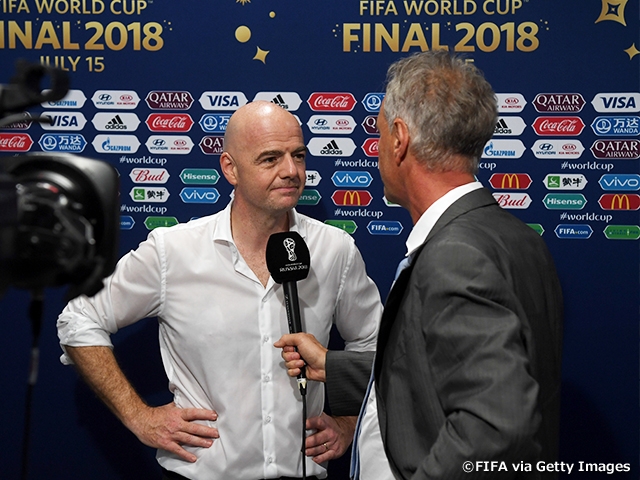 さらにFIFA会長はVAR導入の効果として、オフサイド疑惑のゴールがなくなった点と、「副作用的な効果」として、暴力行為によるレッドカードが1枚もなかった点を指摘。「よりクリアで透明性のあるものになった。VARだけの効果ではないが影響はある。見られていることで教育的な効果が出た」と導入の成果に胸を張った。そして、「今後、VARなしでワールドカップを考えることは難しくなった」と語った。