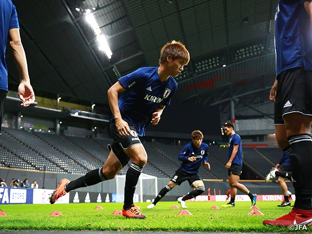 DF車屋紳太郎選手(川崎フロンターレ)は、「初めてやるメンバーで練習したが、チームのコンビネーションがすごくいいと感じた。明日、試合前最後の練習で、合わせるところをしっかり合わせて試合に臨みたい」と話しています。