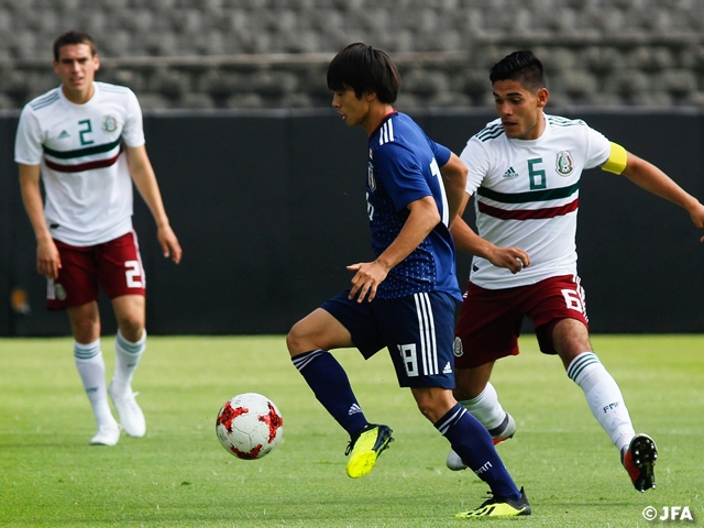 今回のU-19日本代表メキシコ遠征メンバーに招集されて喜ばしく、とても誇りに思います。10月に開催されるAFC U-19選手権インドネシア2018までの最後の招集になるので、いつも以上に高いモチベーションを持って行動したいと思います。今日は強豪メキシコ代表と試合をしました。所属チームでのポジションとは異なりますが、頭の中でやらなくてはいけないことを整理しながらプレーしました。相手のフィジカルの強さに苦戦することもありましたが、攻守ともにアグレッシブにできたと思います。この遠征では長い時間ハードワークできる力を身につけていきたいと思います。残り2試合、ピッチ内での結果を意識して頑張ります。