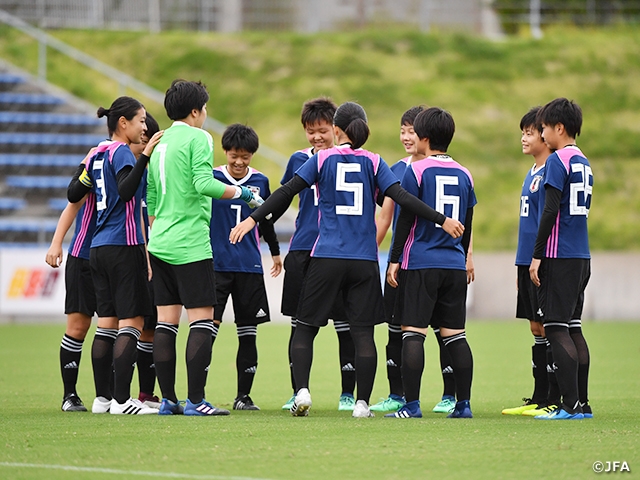 U-17日本女子代表は26日(水)、午前中はトレーニングマッチに向けてそれぞれのポジションにおける動き等を確認してから、午後のトレーニングマッチに臨みました。
