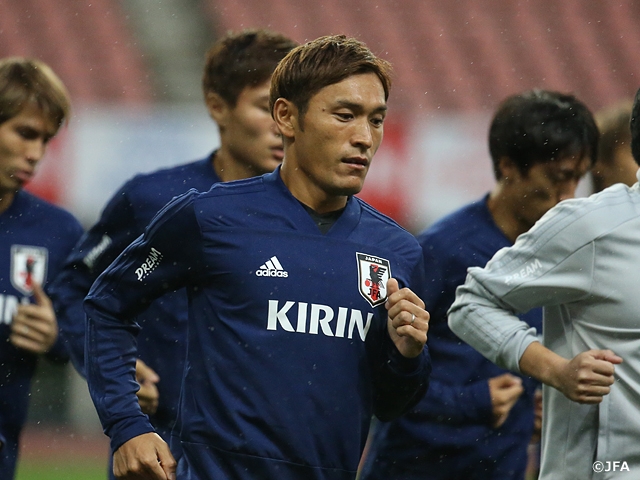 MF青山敏弘選手(サンフレッチェ広島)は、相手の身体能力の高さを警戒しながらも、「ホームだし、戦いのところでは絶対に引かない、ビビらない、負けない」と話し、チーム最年少の19歳DF冨安健洋選手(シントトロイデンVV)は、「チャンスをもらえれば思い切ってプレーするだけ。まずは無失点を目標に」と静かに意気込んでいました。