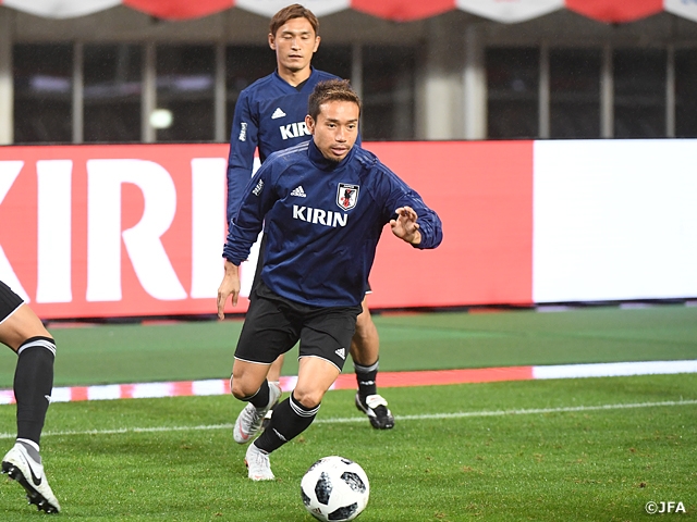 先月、新体制の初陣となったコスタリカ代表戦(3-0)で活躍したMF中島翔哉選手(ポルティモネンセSC)やMF南野拓実選手(ザルツブルク)ら若手に、ロシアでのワールドカップを戦ったFW大迫勇也選手(ベルダー・ブレーメン)やDF吉田麻也選手(サウサンプトン)らを加え、「チームの融合」をテーマにチームづくりを進めています。