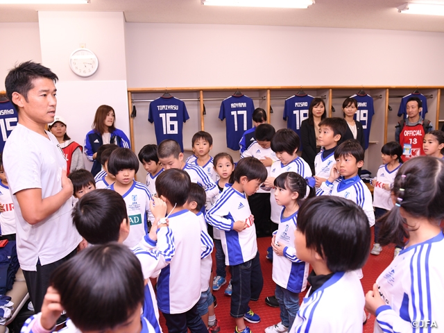 SAMURAI BLUE(日本代表)は新潟でのパナマ代表戦に続き10月16日(火)、埼玉スタジアム2002にてウルグアイ代表と対戦しました。この試合でもJFAユースプログラムを実施し、7つのプログラムに計90人の子どもたちが参加しました。