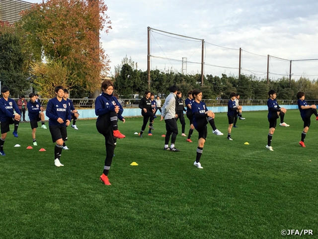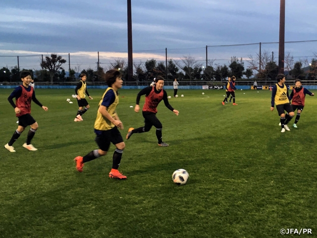 緊張感ある面持ちでJ-STEPに集合した23名の選手は、「来年のFIFA女子ワールドカップ、2020年の東京オリンピックにこの中から1人でも多く連れて行きたい。みんなもそういう想いを持ってプレーしてほしい。」という高倉監督からのメッセージを受けてトレーニングを開始しました。