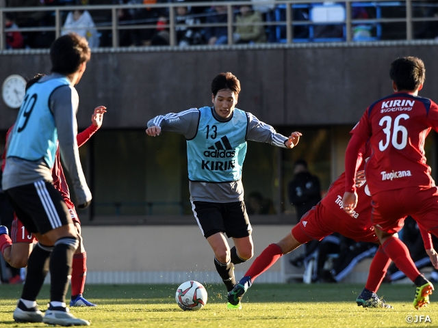 年明け1月5日(土)にアラブ首長国連邦で開幕するAFCアジアカップUAE2019へ向けて調整中のSAMURAI BLUE(日本代表)は12月30日(日)、千葉県内で流通経済大学と練習試合を行い2-0で勝利を収め、国内合宿を終了しました。