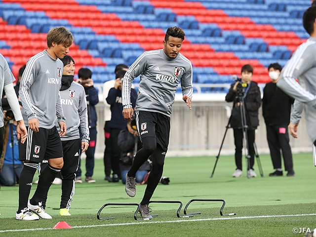 SAMURAI BLUE(日本代表)は3月20日(水)、2日後に迎えるキリンチャレンジカップ2019コロンビア代表戦へ向けて非公開で戦術練習を行いました。