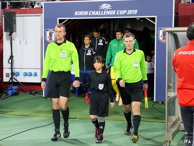 3月26日(火)、ノエビアスタジアム神戸においてキリンチャレンジカップ2019が開催されました。この試合ではJFAユースプログラムとして、プレーヤーズエスコートキッズ、レフェリーエスコートキッズ、ナショナルフラッグベアラー、プレスキッズ、ウェルカムキッズ、ハイタッチキッズ、キリンキッズサポーターの7つのプログラムを実施しました。