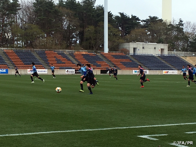 U-19日本女子代表候補は3月27日(水)、トレーニングキャンプ3日目を迎え、ふたば未来学園高等学校の男子高校生と30分×3本のトレーニングマッチを行いました。