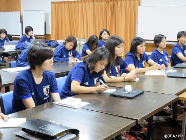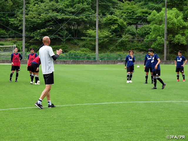 午後から行われたキャンプ最初のトレーニングでは、早い判断でプレーすること、世界基準のプレースピードを意識しながら行いました。途中、パスの強弱や良い判断をするための準備など細かな修正を図りながら緊張感のある強度の高いトレーニングが行うことができました。夜のミーティングでは、望月監督から良いチームとして大事な要素として自立や主体性を持つこと、明確な目標を立てそのために必要な行動など、選手に何が求められるか説明されました。個々の良さを生かしつつチームとして連携・連動性を高めていき選手共々成長できるようにしていきたいと思います。また今の環境が当たり前でなく様々な関係者の協力の下で行えていることに感謝の気持ちを忘れず、悲願の金メダルを目指しトレーニングしていきたいと思います。