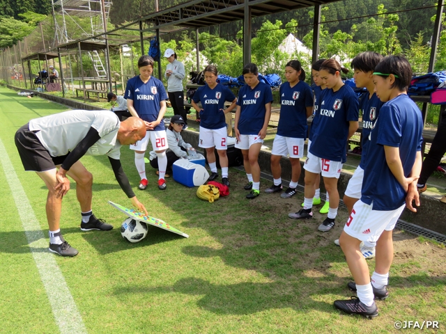 今日の試合では、前日のチャイニーズ・タイペイ女子代表との試合の反省を生かし距離感を良くし、攻守ともにコンパクトにしようと話し、前日と比較するとワンタッチプレーが増え前向きにプレーすることも増えました。しかし、スピードのある相手に対してのラインダウンやチャレンジ・カバーのポジショニングが曖昧な場面も目立ちました。残りの期間で修正できるように取り組んでいきます。