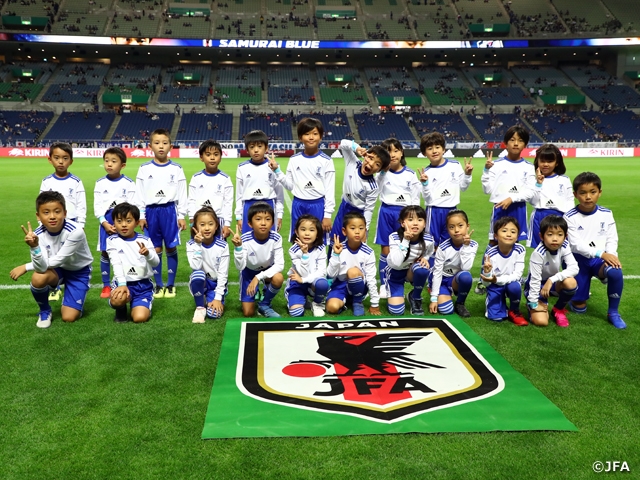 10月10日(木)に埼玉スタジアム2002で開催された、2022FIFAワールドカップカタールアジア2次予選兼AFCアジアカップ中国2023予選において、JFAユースプログラムとして、プレーヤーズエスコートキッズ、レフェリーエスコートキッズ、ナショナルフラッグベアラー、プレスキッズ、ウェルカムキッズ、ハイタッチキッズ、キリンキッズサポーターの7つのプログラムを実施しました。