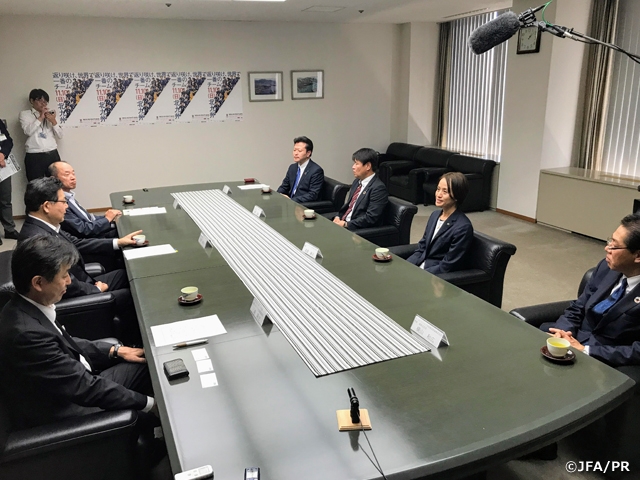 東京オリンピックに向けた強化の一環として11月10日(日)に福岡の北九州スタジアムで開催するMS&ADカップ2019 対南アフリカ女子代表戦を前に、なでしこジャパンの高倉麻子監督が10月21日(月)、開催地となる北九州市の北橋健治市長を表敬訪問しました。