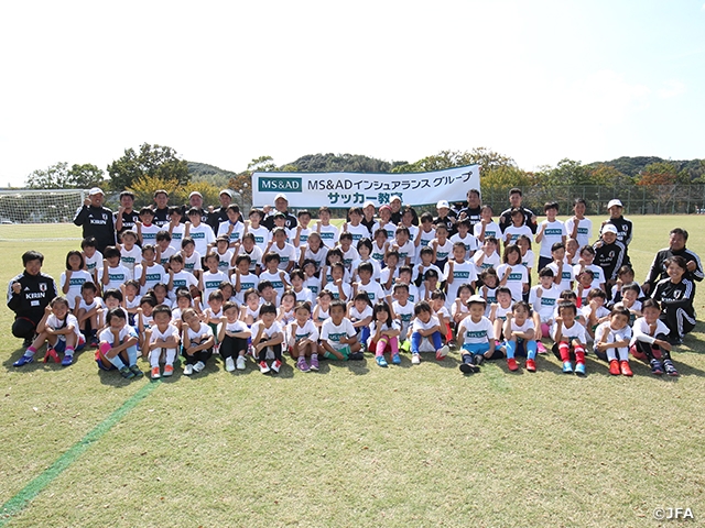 11月10日(日)に開催される「MS&ADカップ2019 なでしこジャパンvs南アフリカ女子代表」に合わせて、10月22日(火・祝)、福岡県北九州市の本城運動場においてMS&ADサッカー教室in福岡がMS&ADインシュアランスグループと日本サッカー協会の共催で行われました。