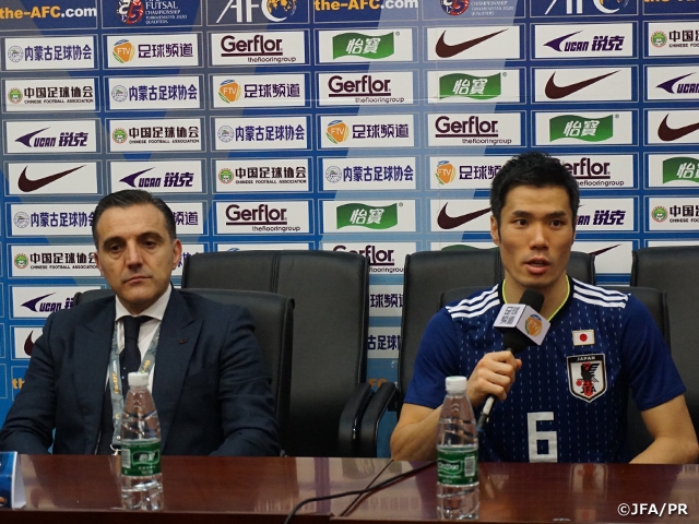 僕自身、フットサル日本代表として国際親善試合は経験がありますが、AFCの舞台で公式戦を戦うことは初めてでした。変に緊張を感じることはなく、普段通りのプレーができたと思います。しかし、確実に決め切れるチャンスを枠外に逃してしまったのは確かなので、韓国戦ではしっかり枠内に打ち込めるようにしたいです。韓国代表とは対戦したことはありませんが、難しい試合になると思います。そういう試合でしっかり結果で貢献できるように頑張ります。