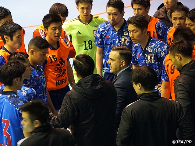 ブルーノ・ガルシア監督は試合前のロッカーで、「今日の試合はこの遠征のしめくくりとなる大事な1戦、油断することが絶対にないようにしよう。相手がどこであれ自分たちのフットサルを全力で体現しよう。AFC本戦を想定したピッチでの試合となるのでいつもとは違う感覚に苦しむこともあるかもしれないが、どんな状況にもすぐに適応して必ず勝って日本に帰ろう」とチームを鼓舞します。
