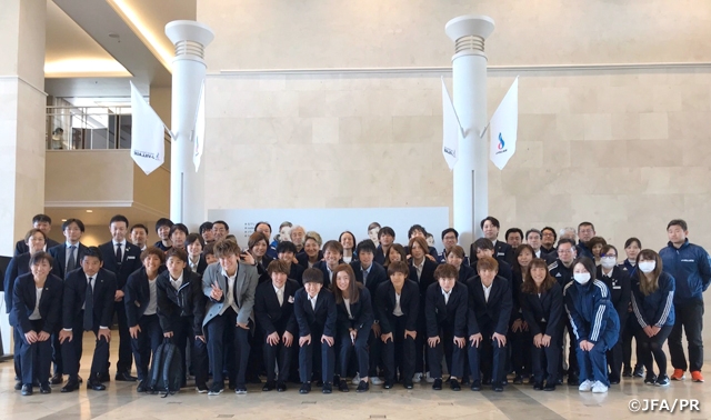 昼食の後に行われた最後のミーティングでは、高倉監督が「2020年はじめのトレーニングキャンプ。思った以上に身体を仕上げて来てくれて、東京オリンピックに賭けるみんなの思いの強さを感じた。チームに帰ってもハードに鍛えるところとケアをするところと、バランスを大事にして継続してほしい」と話し、なでしこジャパンのさらなるレベルアップのために合宿中に常々確認してきた、攻守で強化していくポイントや目指していく姿、そしてコンディション調整の大切さを全体で再度共有しました。そして、それぞれのチームに戻りリーグの開幕に備える選手たちに向け、「いつも笑顔で、サッカーを楽しんでやってほしい。オリンピックで金メダルを獲るためにはひとりひとりの力が必要。助け合ってやっていこう」とメッセージを伝え、全6日間に渡る活動を締めくくりました。