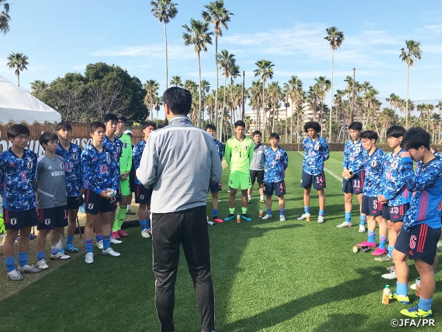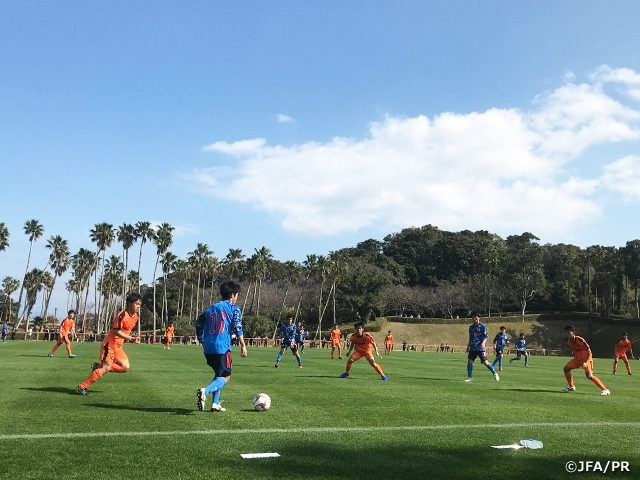 鹿児島県指宿市でJENESYS 2019青少年交流大会に参加しているU-17日本代表は、2月26日(水)にグループステージ第1戦となる地元鹿児島県選抜との試合(40分ハーフ)を迎えました。