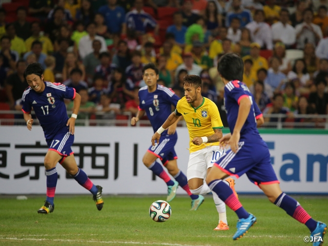公益財団法人日本サッカー協会は、新型コロナウイルス感染拡大予防のため自宅で過ごされている全ての方々にサッカー観戦をお楽しみいただけるよう、過去の代表戦をJFATV Classicsと題し配信しています。第6回は2014年10月14日にシンガポールのナショナルスタジアムで行われた国際親善試合です。この試合はハビエル・アギーレ元日本代表監督率いるSAMURAI BLUE(日本代表)初の海外試合となり、ネイマール選手を擁するブラジル代表との一戦です。今回は柴崎岳選手に当時を振り返っていただきました。