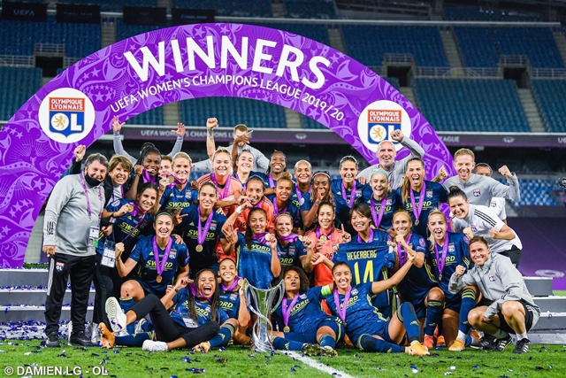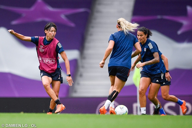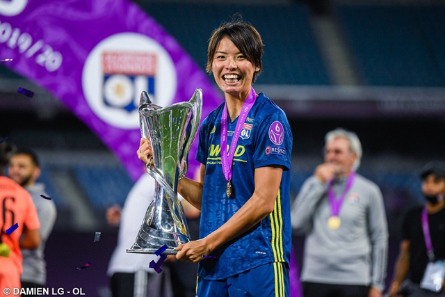 熊谷 前半立ち上がりから得点を狙っていました。自分たちのフォーメーションに相手が慣れていなかったのでかなり自由にプレーでき、その中でいい時間帯にゴールを決められてすごくうれしかったです。優勝の瞬間は最高の気分でした。優勝は何度も経験していますが、その時、その時で違う思い出があります。今年は新型コロナウイルスの影響で約2カ月半、チームとして活動できない時間があった中での開催でしたし、大会4連覇中だったので、他のチームの「リヨンを倒す」という気合を強く感じました。勝ち続けることは簡単ではないと感じながら戦っているので、その意味でも今回の5連覇は、今までとは一味違う喜びがありました。