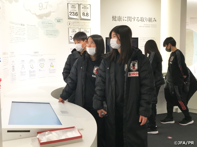 23日の午前中には、「東日本大震災・原子力災害伝承館」と「特定廃棄物埋立情報館リプルンふくしま」の2つの施設をチーム全員で訪問しました。2011年3月11日。日本は誰も経験したことのない未曾有の災害に見舞われましたが、世界中の人々に支援していただきながら、この状況を乗り越えようと奮起しました。選手たちは施設の見学を通して復興に向けての歩みなどを学び、狩野倫久監督も「(災害から立ち上がった)日本人の芯のある強さを、選手たちには競技にも生かして欲しい」とコメントを寄せました。