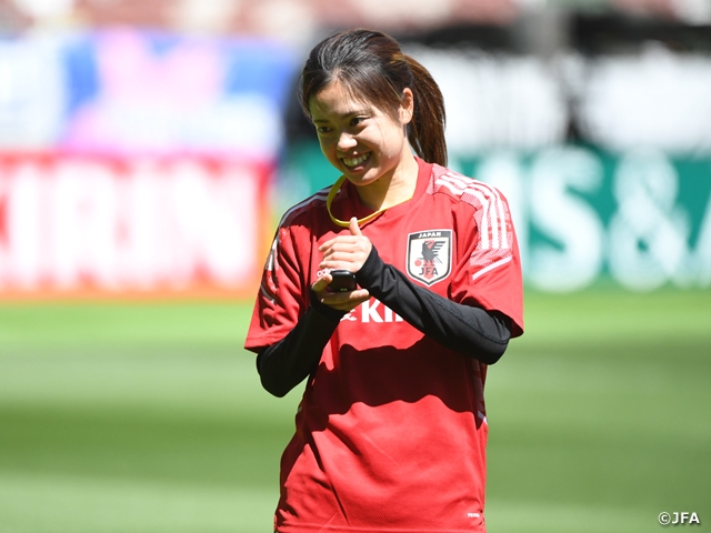 パラグアイ戦ではたくさんボールを受けてボールを前に運び、シュートや得点チャンスを作り出そうと入りました。そんなに緊張もせずいつも通りのプレーを出せたと思います。(高倉監督から)「ボールをテンポよくさばいて、試合のテンポを上げてほしい」と言われて入ったので、それも意識していました。 国立競技場ではプレーしたことがなかったのですが、今日は素晴らしいピッチで練習ができました。明日も自分が積み上げてきたものを100%出し切りたいです。