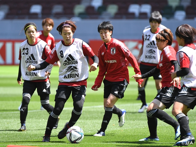 国際親善試合・パナマ女子代表戦を翌日に控えた4月10日(土)、なでしこジャパンは試合会場の国立競技場で公式練習を行いました。