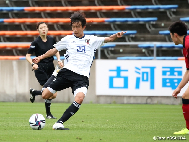 フィジカル、スピード、技術が高い相手に自分たちがこの4日間やってきた攻撃でも守備でも主導権を握ることが出来なかった試合でした。その中でも1本目、数少ないチャンスの中から1点決められたことは良かったと思います。自分は2本目の途中から出場してチームが1点差で負けている状態から守備をどう改善し、自分たちの攻撃の時間を増やせるかを考えならプレーしました。自分たちの時間を作りながらサイドに展開してクロスからシュートやロングシュートが増えてきたけどゴールを決めきれず流れを変えることが出来ませんでした。もっと後ろから試合を落ち着かせることができればチャンスはもっとあったのかなと思います。今回の合宿で廣山監督はじめたくさんのスタッフに色々なアドバイスを貰い、自分に今足りない部分や、試合の90分間のなかで常に頭を休めずに考えながらプレーすることの重要性を感じました。逆に自分の通用したところはもっともっと伸ばしていかないといけないと思った4日間でした。