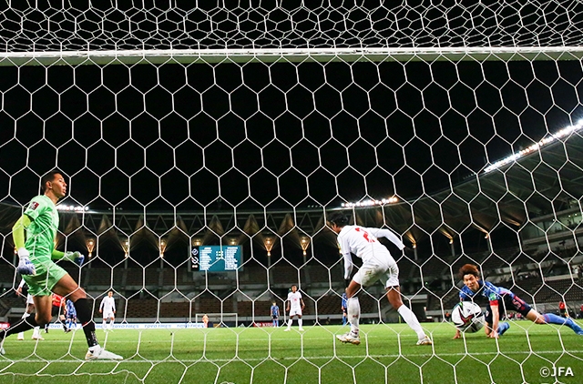 最終ライン中央にはDF板倉滉選手(FCフローニンゲン)が入ってDF吉田麻也選手(サンプドリア)と初めてペアを組み、今回の予選で初出場のGK川島永嗣選手(RCストラスブール)がゴールを守ります。今季オリンピック・マルセイユでプレーした両サイドバックのDF長友佑都選手とDF酒井宏樹選手の二人が高い位置を取って、ボランチのMF守田英正選手(CDサンタ・クララ)、MF遠藤航選手(VfBシュツットガルト)らと攻撃を押し上げました。