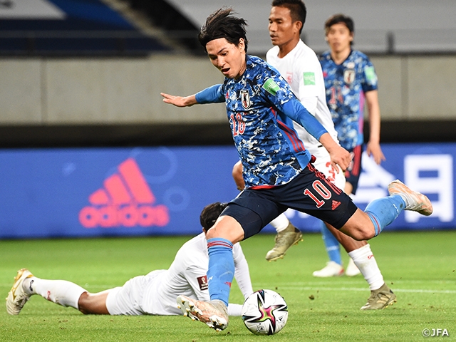 試合前からできるだけ点を獲りたいと考えていました。しっかりいいパスをくれた周りに感謝です。チーム全体でしっかりとゴールに向かうプレーを心がけようと常に言っていて、引いた相手にも、これを最終予選でもしっかり出せるようにしたい。韓国戦から鎌田選手と南野選手といい関係で来ているし、伊東選手も縦のスピードがあるので、いいバランスでできています。次はジャマイカ戦なので、その相手にもしっかりできることを見せたいですし、楽しみです。