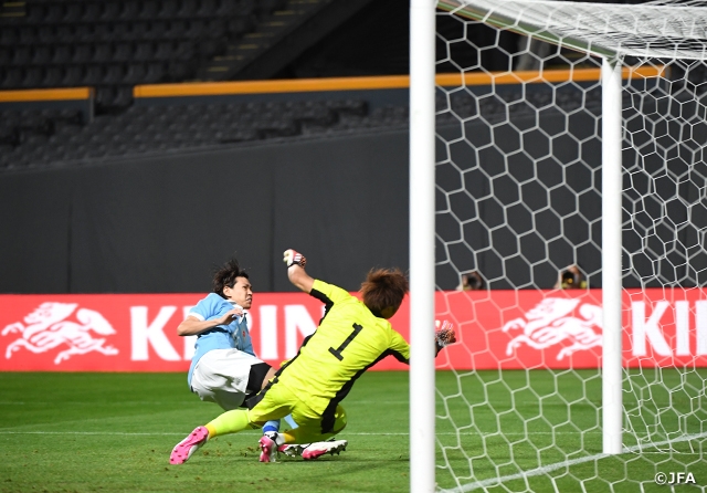 押し込まれる場面が続いたSAMURAI BLUEですが、終盤の86分には浅野選手が足を活かしてカウンターで攻め上がって相手ゴールを脅かし、89分には伊東選手、古橋選手が連続シュートで相手ゴールに迫る場面を作ります。