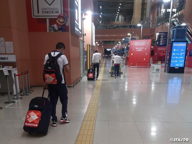 FIFAワールドカップカタール2022アジア2次予選兼AFCアジアカップ中国2023予選(6月7日/パナソニックスタジアム吹田)で日本代表と対戦するタジキスタン代表が3日(木)に来日しました。試合に際しては全ての選手、スタッフや関係者の徹底した感染対策を実施しており、選手たちは出国72時間前以内におこなった検査で陰性を確認した上で入国し、空港内でも抗原検査を受検しました。6日(日)の午前中にはウスモン・トシェフ監督がオンラインでの記者会見に出席。午後にチームはスタジアムでの公式練習を行いました。FIFAワールドカップカタール2022アジア2次予選兼AFCアジアカップ中国2023予選 SAMURAI BLUE 対 タジキスタン代表は7日(月)19:30キックオフ予定です。