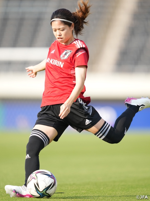 ミランでの試合後に少し時間があったので、体を休めて今回の代表活動に参加することができました。長い移動はありましたが、コンディションは特に問題なく合流できています。昨日は全体練習に参加しましたが、なでしこは明るい雰囲気で、やっぱり日本人選手とのプレーはやりやすいと感じました。もちろん結果は代表チームとして必要なところですが、その中でもチャレンジをすることが大事だと思っています。相手に負けないようにという試合ではなく、自分たちが思うようなチャレンジをしたいです。