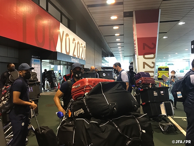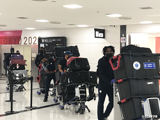 7月12日(月)に大阪/ヨドコウ桜スタジアムで開催されるキリンチャレンジカップ2021でU-24日本代表と対戦するU-24ホンジュラス代表が、7月9日(金)に来日しました。選手たちは出国72時間前以内におこなった検査で新型コロナウイルスの陰性を確認した上で移動し、入国時に空港内で行った抗原検査においても陰性が確認され、第32回オリンピック競技大会(2020/東京)のために装飾された専用口を通って空港を後にしました。
