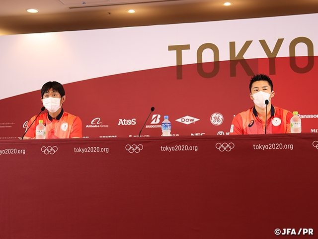 トレーニングに先立って埼玉スタジアム2002で行われた公式会見には、森保一監督と中山雄太選手が出席しました。「今までやってきたことに自信を、そしてこの戦いに挑める誇りを持ってプレーしてほしい」と森保監督が語れば、中山選手も「金メダルへの思いは強くなる一方。ただ、ひとつひとつ積み上げてきた結果として今がある。まずはスペイン戦、全力で勝利をもぎ取る」と力強くコメントしました。