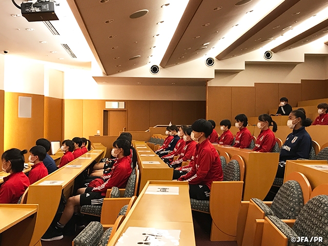 U-19日本女子代表候補チームは、今年の5月のチームの立ち上げから4回目のトレーニングキャンプを11月15日(月)よりJヴィレッジで行っています。集合日には選手とスタッフ全員がSmartAmp法検査で全員の新型コロナウィルス陰性を確認し、Jヴィレッジに移動しました。チームはJヴィレッジに移動後、選手のコンディションに合わせて、練習組とリカバリー組でグループ分けをしてトレーニングを実施しました。夜のミーティングでは、池田太監督がこれまでの3回のトレーニングキャンプで積み重ねてきたことを確認し、さらに出場が決定したFIFA U-20女子ワールドカップコスタリカ2022の優勝という目標を全員で共有しました。