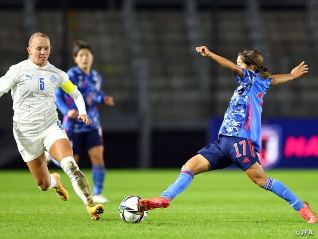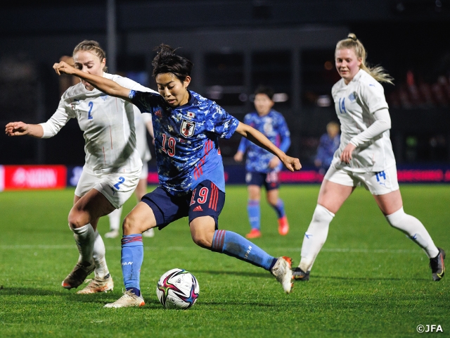 迎えた後半も組織的にボールを奪い、動かし、ゴールを目指す日本と、シンプルに相手ゴールに迫るアイスランドが一進一退の攻防を繰り広げます。日本は57分に猶本光選手(三菱重工浦和レッズレディース)、成宮選手に替え隅田凜選手、宮澤ひなた選手(いずれもマイナビ仙台レディース)を投入。中盤のさらなる活性化を図りますが、次のゴールを奪ったのはアイスランドでした。70分、自陣から日本の最終ライン、左サイド裏のスペースにロングボールを送ると再びスベインディス・ジェーン・ヨンスドッティル選手が抜け出し中央へグラウンダーのパスを送ります。これを受けた途中出場のベルグリンド・ビョルグ・ソルバルズドッティル選手がダイレクトでゴールに流し込み追加点。手数を掛けないシンプルなゴールでリードを2点に広げます。何とか1点を返したい日本はその後77分に田中美南選手(INAC神戸レオネッサ)、林穂之香選手(AIKフットボール)を投入しゴールを目指しますが、その後は両チームともディフェンス陣がゴール前で粘り強い守備を見せ得点は生まれず、そのまま試合は終了。自らの特長を生かして2点を奪ったアイスランドが勝利を収めました。