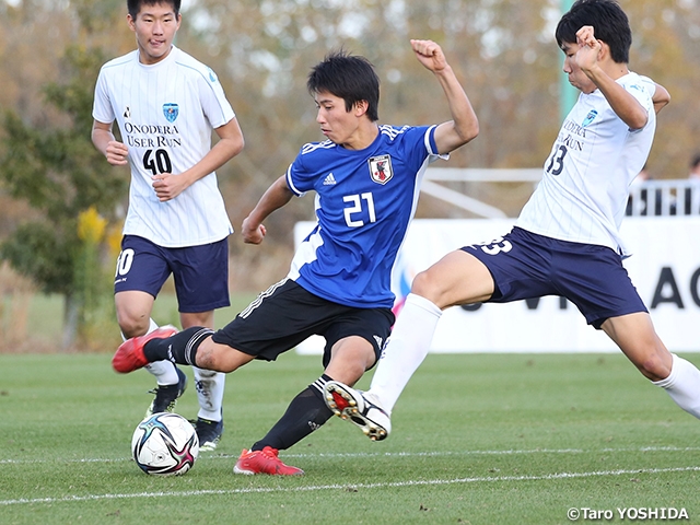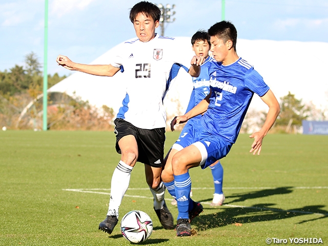 このチームは2021年の活動としてモンテギュー国際大会、U-16インターナショナルドリームカップへの出場などを予定していましたが、新型コロナウイルスの影響で大会が実施できない状況が続いています。今回は福島県やJヴィレッジの協力を得ながら、U-17日本高校選抜、福島県U-16選抜、横浜FCユースの3チームにも参加してもらい、4チーム総当たり戦の大会形式のキャンプを行っています。非公式の大会ではありますが、このチームとして初めての大会ということもあり、監督、選手も「アジア予選のつもりで戦おう」と高いモチベーションで臨んでいます。