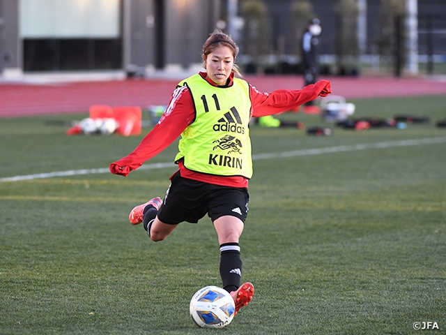 私は初めてなでしこジャパンの選手として大会に出るので、自分自身が結果を残すこともそうですし、チームが残す結果に対して自分が貢献できるようにしたいです。チームとしてまだ得点がないなか、前線の選手なので得点やアシストで還元できるようなプレーをしたいです。