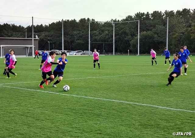 21日(月)午後には、なでしこリーグ1部のスフィーダ世田谷と20分×2本のトレーニングマッチを実施。これまでトレーニングで積み上げてきた成果を発揮すべく、果敢に相手ゴールに攻め込みます。25分に松永未夢選手(日テレ・東京ヴェルディメニーナ)が、33分には眞城美春選手(日テレ・東京ヴェルディメニーナ)が得点を決め、2-0で勝利しました。
