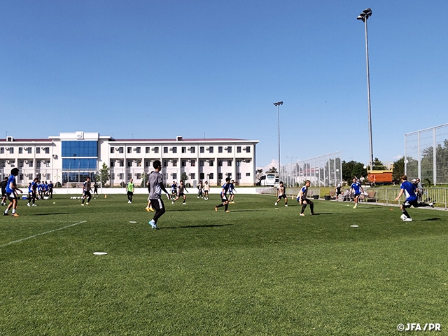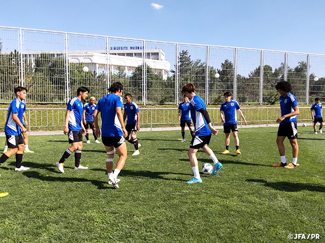 AFC U23アジアカップに出場するU-21日本代表は1日(水)、開催地ウズベキスタンでの2日目を迎え、遅れて到着した4選手も合流して23人全員でトレーニングを行いました。