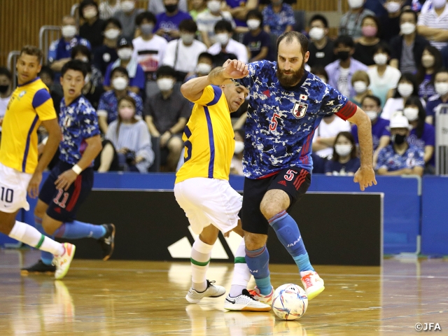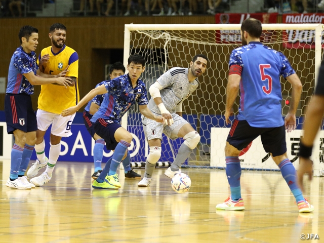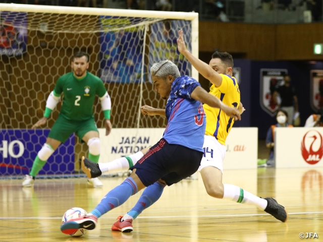 フットサル日本代表は9月18日(日)、愛知県のスカイホール豊田でフットサルブラジル代表と国際親善試合の第2試合を行いました。15日(木)に行われた初戦で1-5と敗れていた日本は、その試合で出た修正点に取り組み、第2戦に臨みました。