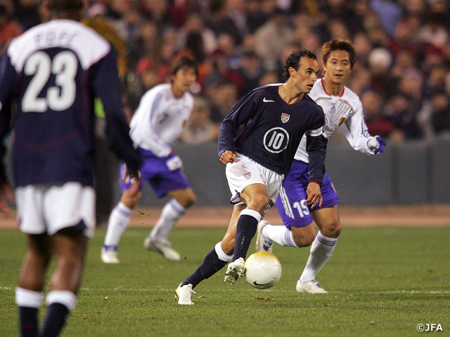 太平洋を挟む日本とアメリカが、過去に対戦したのは2度。最後に戦ったのはサンフランシスコでの国際親善試合で、2006年ドイツ大会を約4カ月後に控えた強化の一環。ジーコ監督が指揮する日本は3点のリードを許し、巻誠一郎、中澤佑二の得点で追い上げたものの及ばず、2-3で敗れている。