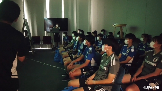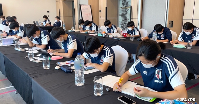 オフ・ザ・ピッチでは、学校の課題に取り組む「学習の時間」が設けられました。選手たちは日本代表であると同時に高校生であり、学校や所属クラブのご協力があって今大会に臨むことができています。「サッカーと同じように勉強も自分たちのタスクとしてしっかり取り組もう」と狩野倫久監督より話があり、選手たちは集中して課題に取り組みました。
