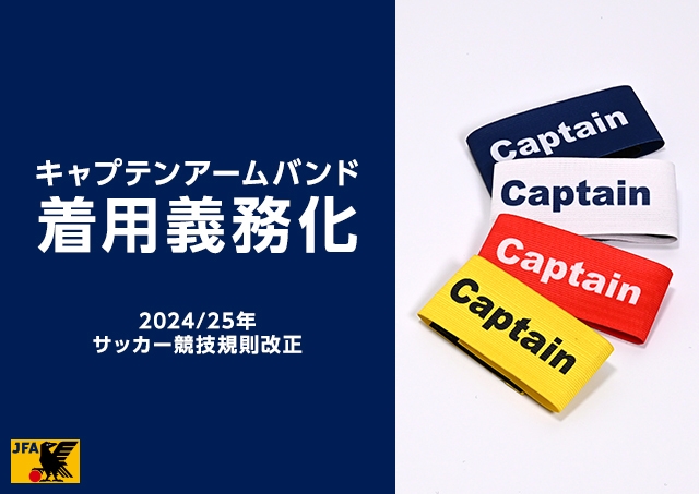 2024/25年サッカー競技規則改正により、キャプテンアームバンドの着用が義務化されました。これに伴い、JFA STOREでもキャプテンアームバンドの販売を開始しました。通常サイズに加えて、キッズサイズもラインアップ。