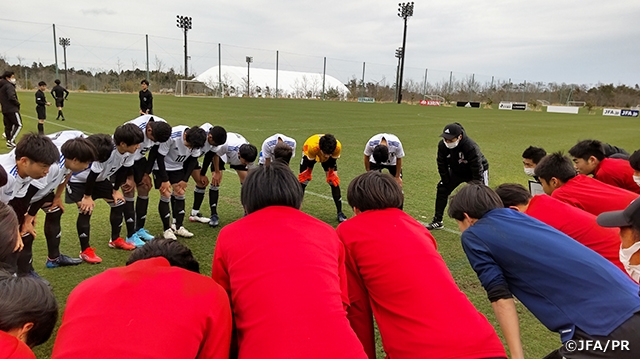 多くの地域で新型コロナウイルスの感染拡大が収まりきらない状況下において、キャンプ地のJヴィレッジをはじめ、多くの関係者のご理解とご協力のもと、今回のキャンプを開催できたことに心から感謝しています。また、選手を派遣して下さった保護者の皆様、所属チーム、学校の先生方、トレーニングマッチに快く応じていただいた尚志高校の選手、関係者の皆様、本当にありがとうございました。U-15年代のリーグ戦も本格的に始まるなかで、選手それぞれが成果と課題を持ち帰り、大きく成長した姿で次回キャンプに集まれることを楽しみにしています。